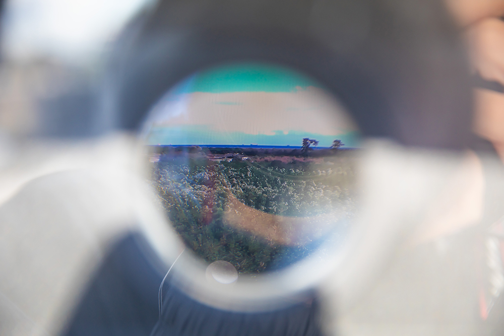 当初、夏の間にお披露目予定だった《新浜ペリスコープ》は、その後の望遠システムの調整に時間を要し、10月28日についにお披露目の時を迎えた。町内会や関係者にも集まっていただき、川俣さん、汎用動力研究所の3人から挨拶があった。その後、牛島さんによる動作の説明があり、参加者たちは順番にペリスコープを操作、海や山々を眺めた