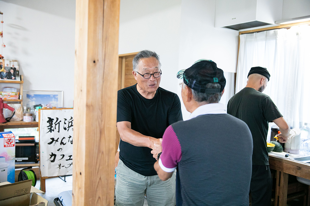 津波警報解除後、制作を再開したが、スケジュールに遅れが発生。8月2日に予定されていた、新浜町内会主催のフットパスも中止となる。しかし、せめて交流会は開催しようということで、みんなの家を会場に8月1日に実施。井土町内会の方々、関係者の方々、せんだいメディアテークの館長に今年から就任したロバート キャンベル館長も参加し、親睦を深めた