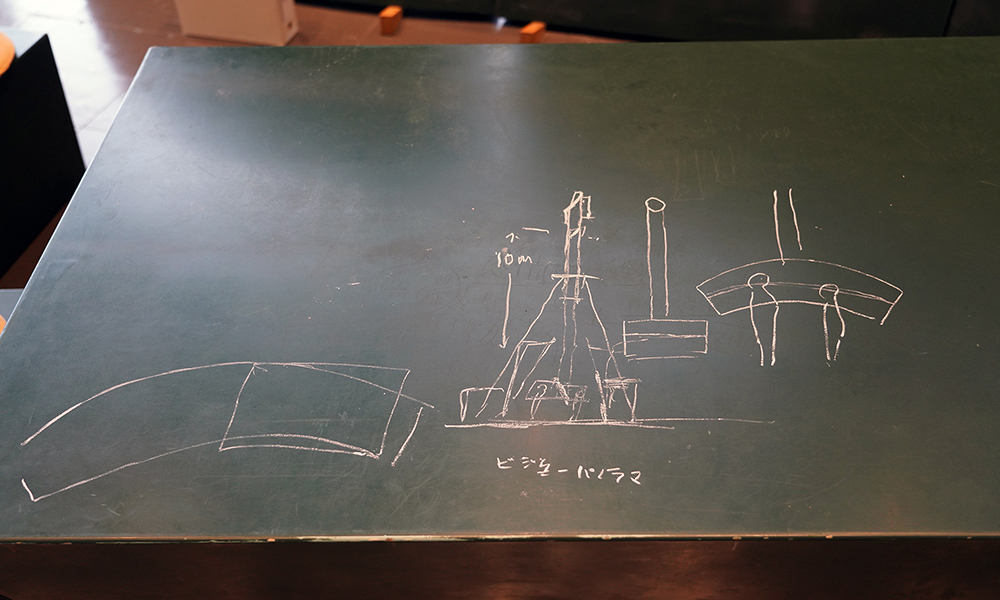 汎用動力研究所のスタジオ(横浜にある「ExPLOT Studio」内)で、鉄塔の高さ、アナログにするかデジタルにするかなどが検討された